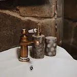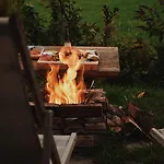 This accommodation comprises an adjoining terrace furnished with a stone fireplace. The property is also furnished with a sofa. The apartment is equipped with a bathroom that features a hairdryer, bath sheets, and slippers. Additionally, you'll find a bath.